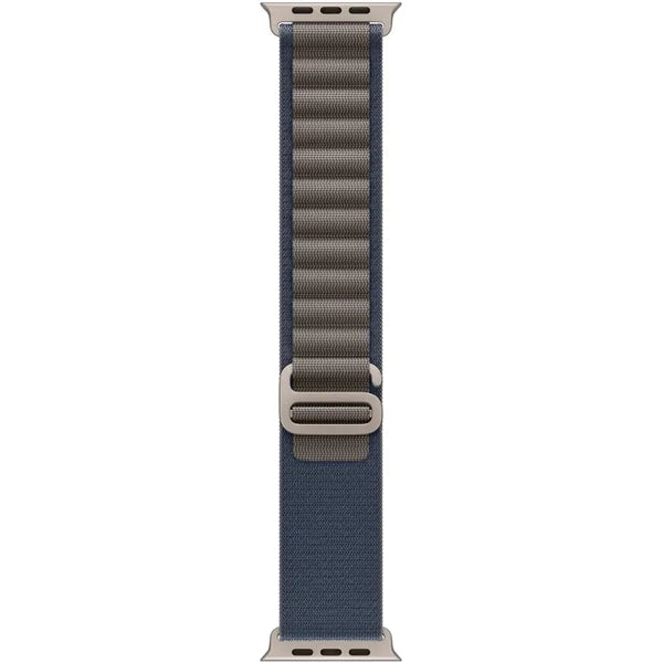 فيما يلي ميزات حزام Alpine Loop مقاس 49 مم باللون الأزرق لساعة Apple Watch: