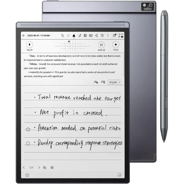the IFLYTEK AINOTE Air 2 combines an 8.2″ high-resolution E-Ink display and a low-latency Wacom stylus with on-device AI for real-time voice-to-text transcription, multilingual handwriting conversion, and meeting summaries.