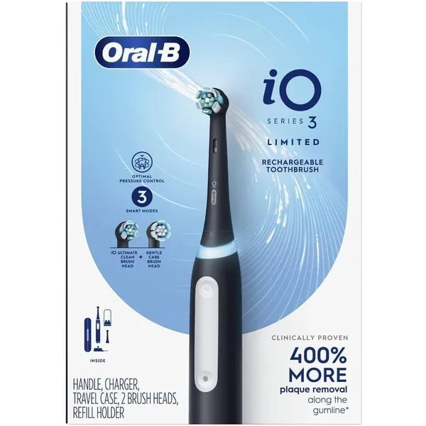 The Oral-B iO Series 3 Luxe Rechargeable Electric Toothbrush, designed to elevate your brushing routine with advanced technology and premium features. Combining superior cleaning power with smart functionality, this toothbrush helps you achieve a dentist-like clean at home with every use.
